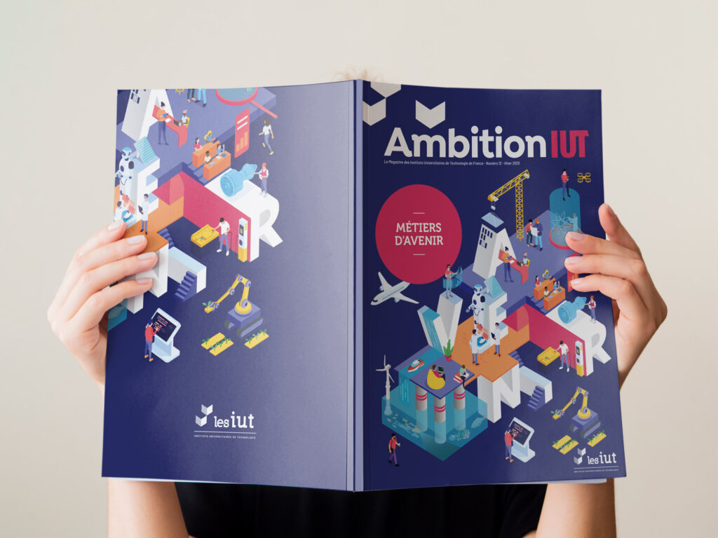 J’ai eu la chance de participer à la mise en page du magazine Ambition IUT, projet porté par l’ADIUT.