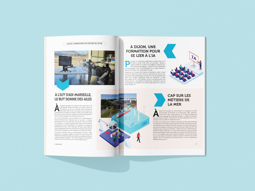Le résultat est un magazine coloré, vivant et accessible, pensé comme un outil de communication attractif à destination des étudiants et des partenaires des IUT.